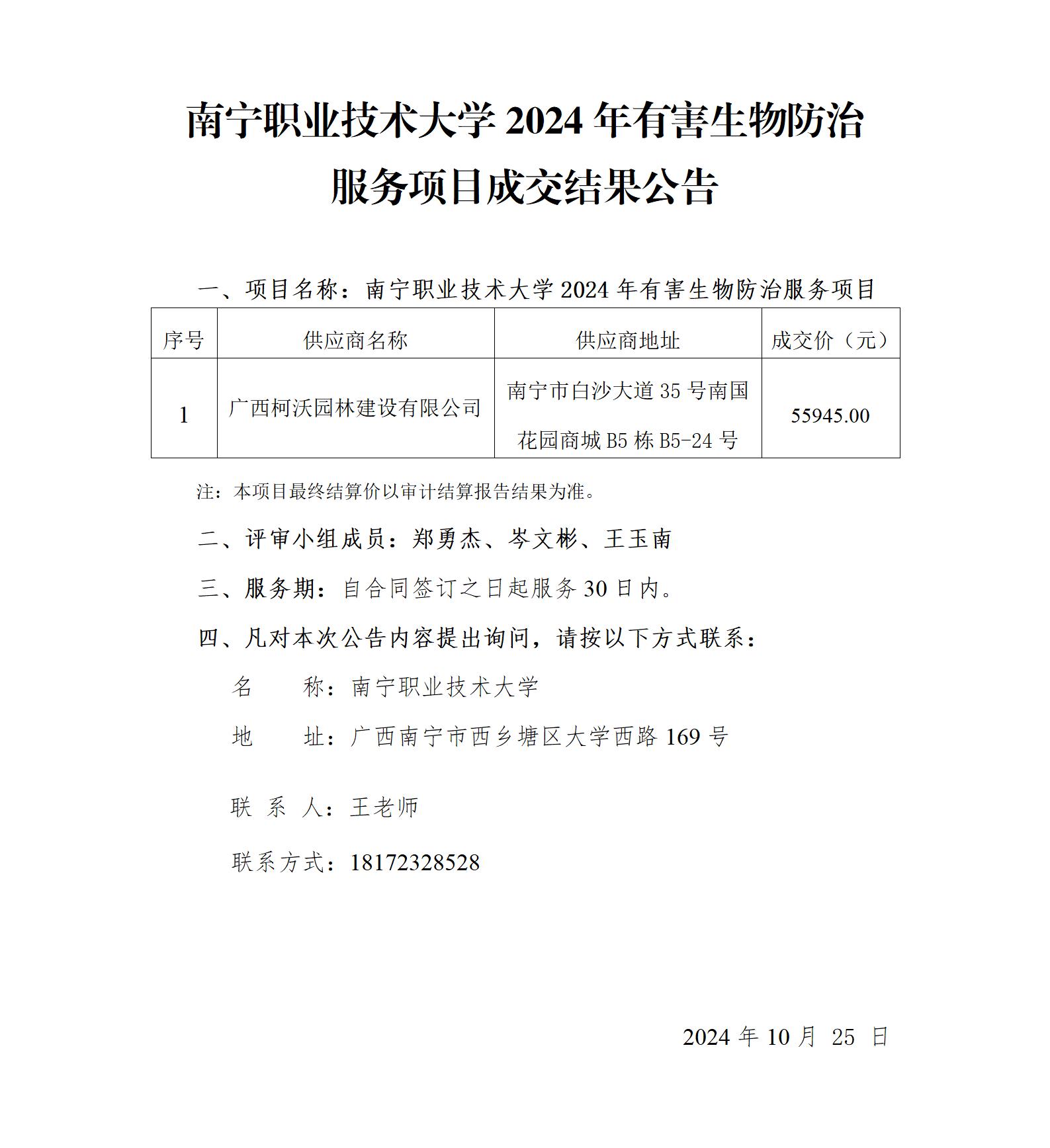 太阳成集团tyc7111cc2024年有害生物防治服务成交结果公告