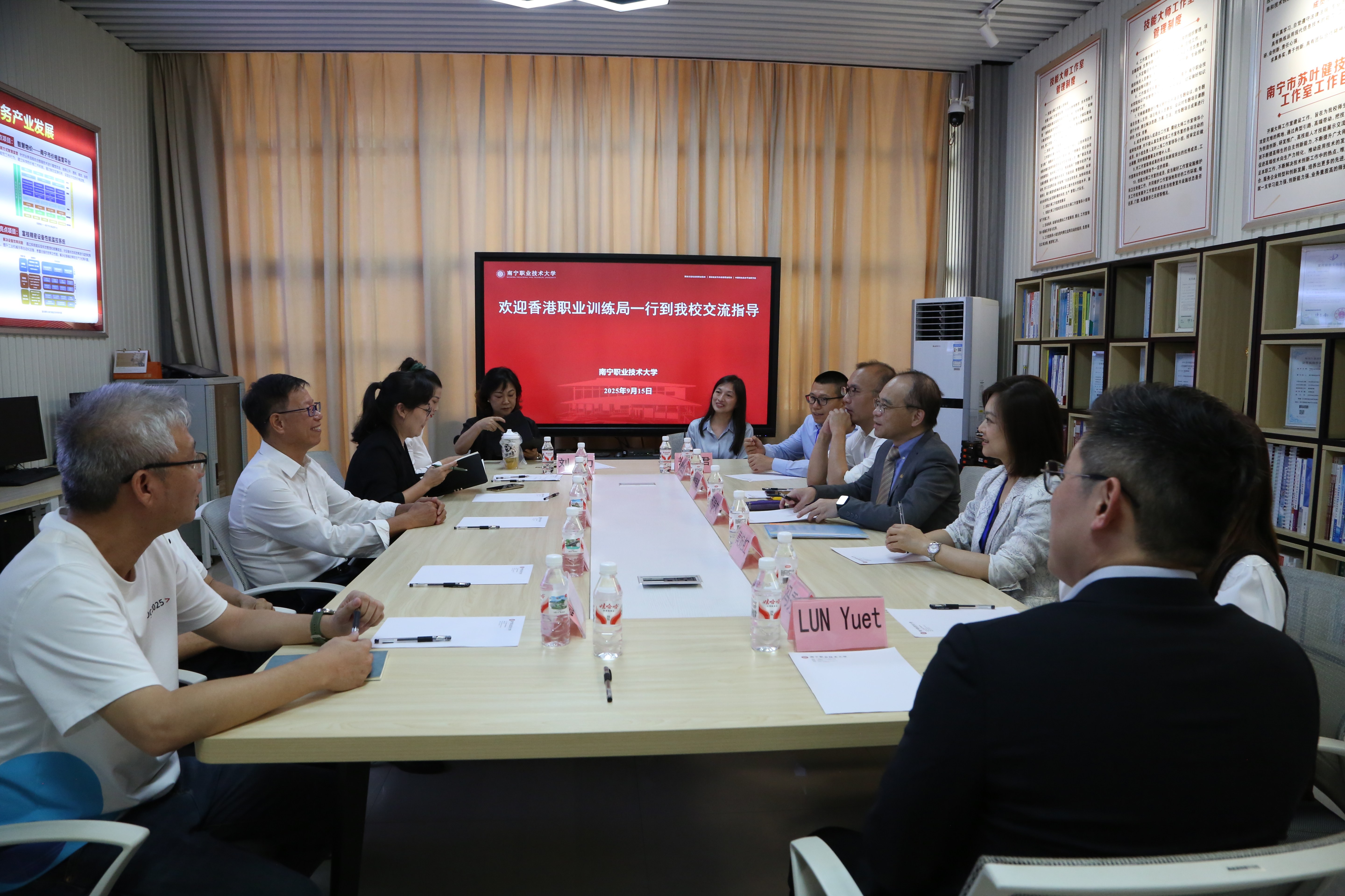 为深化桂港现代职业教育协同发展,探索人工智能领域产教融合创新路径,9月16日,香港职业训练局高级助理执行干事、持续专业进修处处长、高峰进修学院院长苏伟文一行8人到太阳成官网考察交流。学校党委副书记、校长周旺接待苏伟文一行。