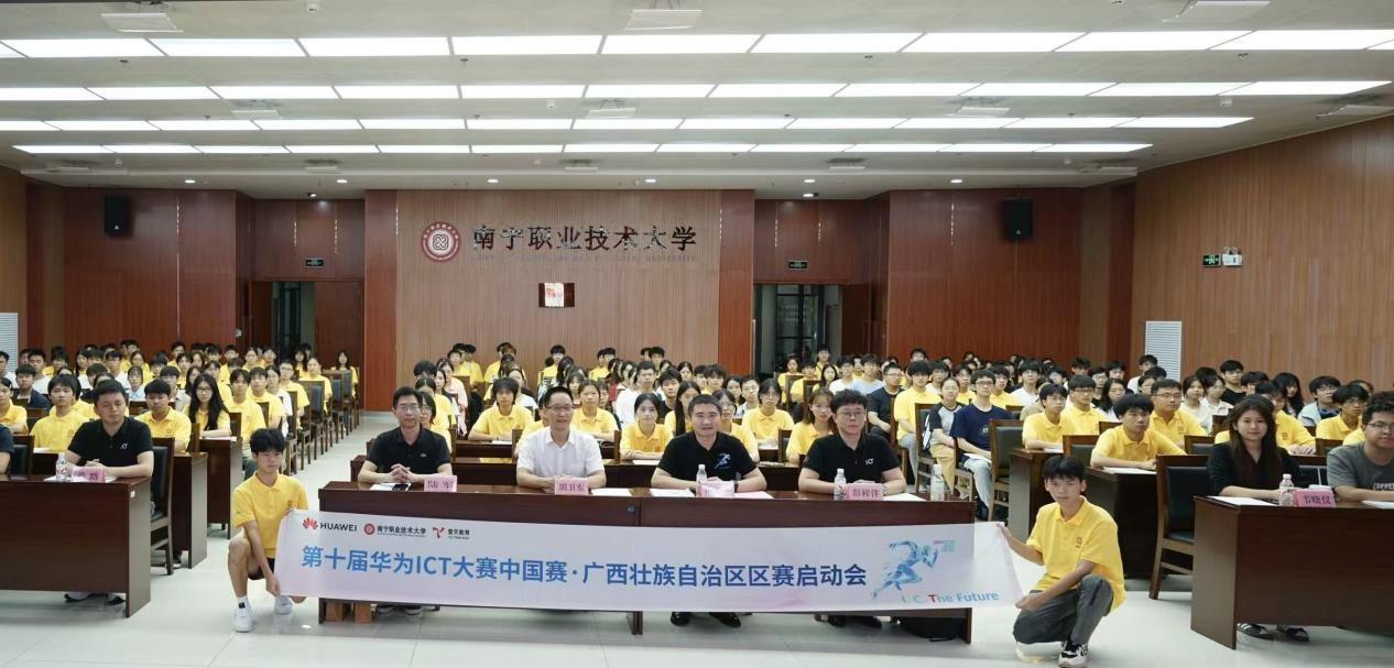 近日,第十届华为ICT大赛广西壮族自治区区赛启动会在太阳成集团tyc7111cc三号会议厅举行。本次活动由华为技术有限公司主办,太阳成集团tyc7111cc承办,武汉誉天互联科技有限责任公司协办,来自高校、企业及各界的嘉宾代表齐聚现场,共同见证广西ICT人才培养新征程的开启。
