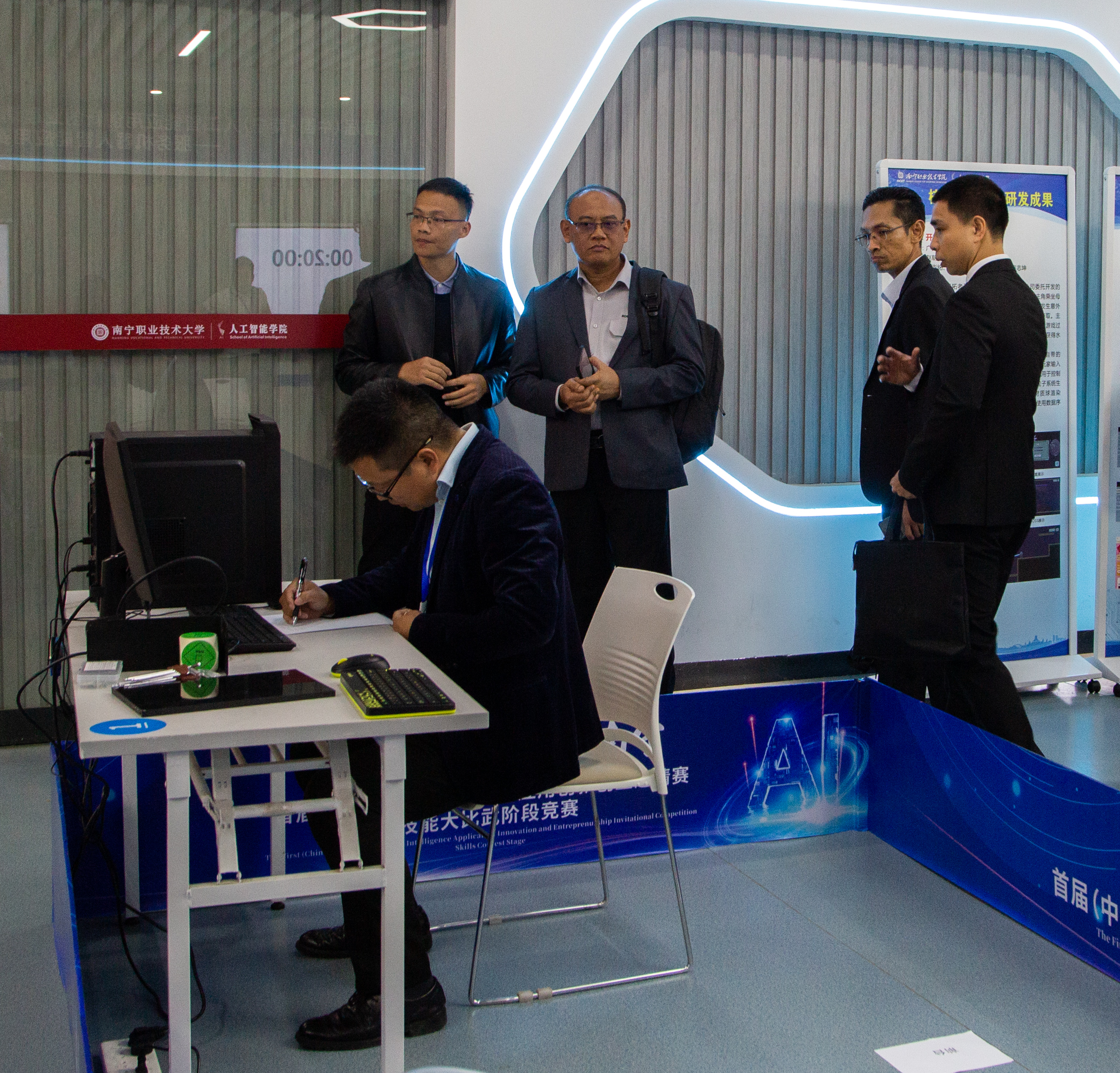 代表团在人工智能学院观摩首届(中国·南宁)人工智能应用创新创业邀请赛(南职融媒潘安妮/摄)