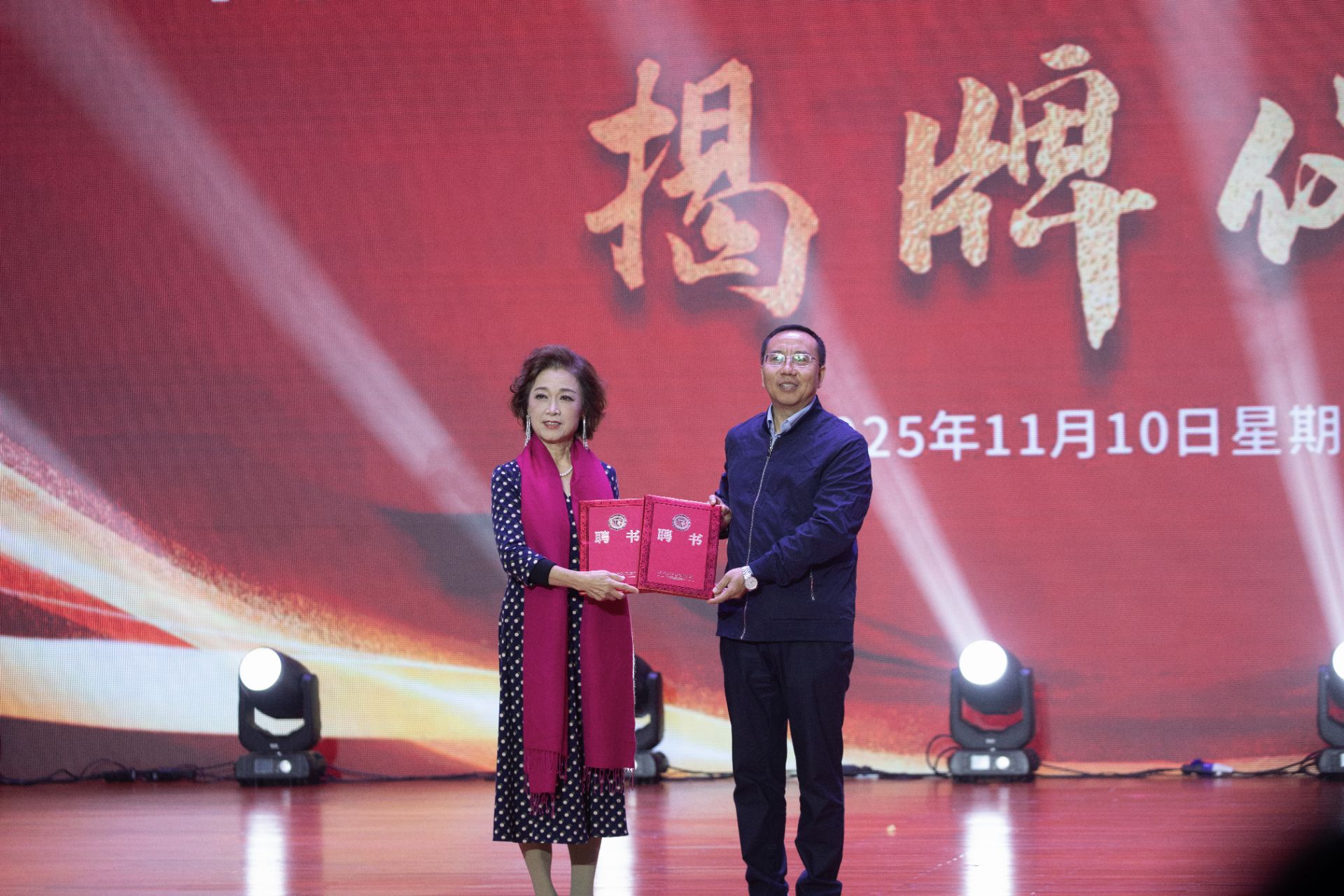 活动现场,学校领导、嘉宾、金北凤教授共同为“太阳成集团tyc7111cc美育中心”“金葵声乐艺术基地”揭牌,蹇兴超为金北凤教授颁发聘任证书。