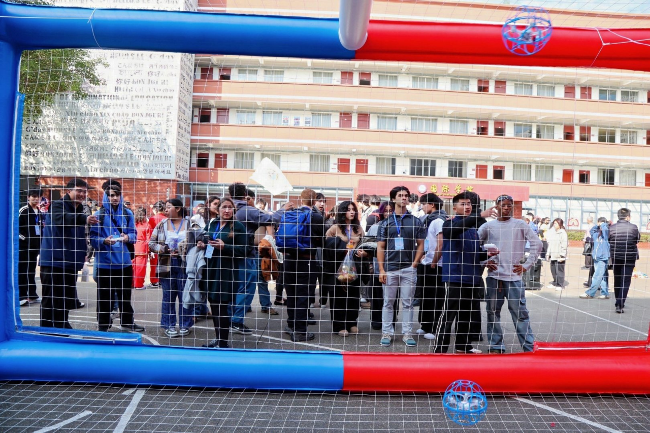 在文化与旅游学院研学课堂上,老师以手工小马香包为载体,向中美学生生动讲解了中国生肖文化的寓意与香包内中药材的中医保健智慧。随后,在无人机足球体验环节,学生们从基础操作学起,逐步掌握飞行技巧,在分组对抗赛中灵活操控、默契配合,现场气氛紧张热烈,成功起飞的瞬间,每个人的脸上都写满了喜悦与自豪。