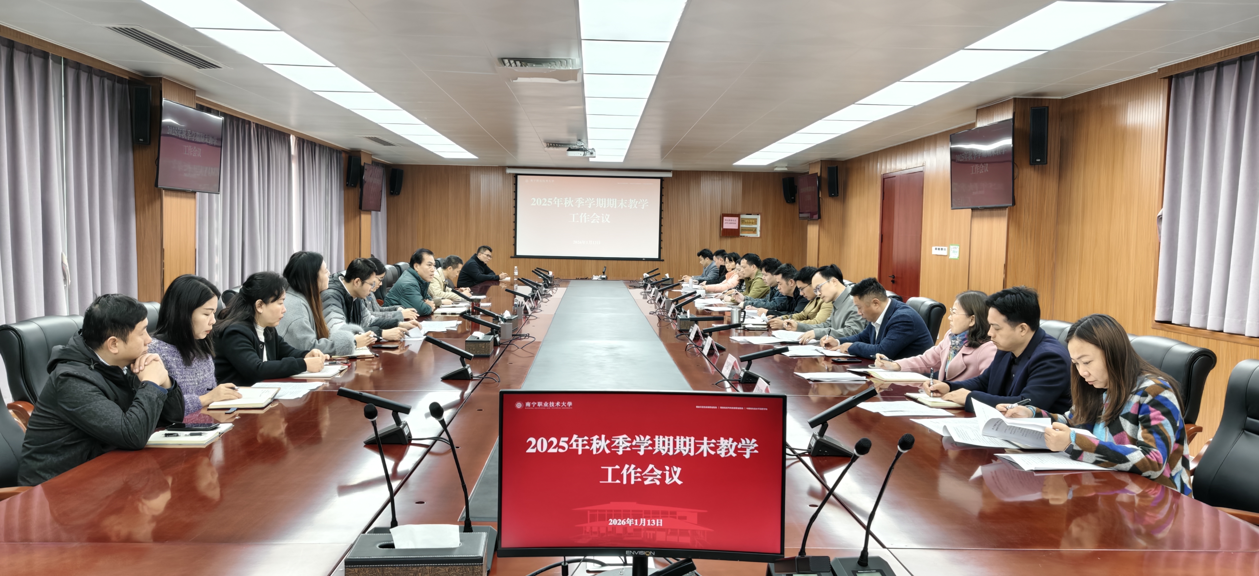 会上,王凤岭听取了各学院本学期教学计划完成情况、期末考试安排、实训场所使用、教风学风现状,以及下学期兼职教师聘任计划、排课场地落实情况的汇报,并针对存在问题和困难,提出解决思路和指导意见。他强调,教学质量是学校的生命线,必须从严从实抓好各个环节。要严格规范教学管理,狠抓制度落实,尤其要强化期末考试全流程管控,严肃考风考纪,确保考试公平公正。要强化师资队伍建设,明确比例要求,各专业必须按本科专业教学评估要求保证兼职教师比例和授课要求。要优化教学资源配置,明确管理职责,确保教学设施设备完好,为教学正常运行提供保障。要紧扣本科评估要求,夯实内涵建设,不断优化专业教学团队,严格规范教材选用。要加强政策理论学习,提升治理能力,组织开展职业教育重要政策文件学习,以考促学,以学促改,确保办学方向正确、政策执行到位。