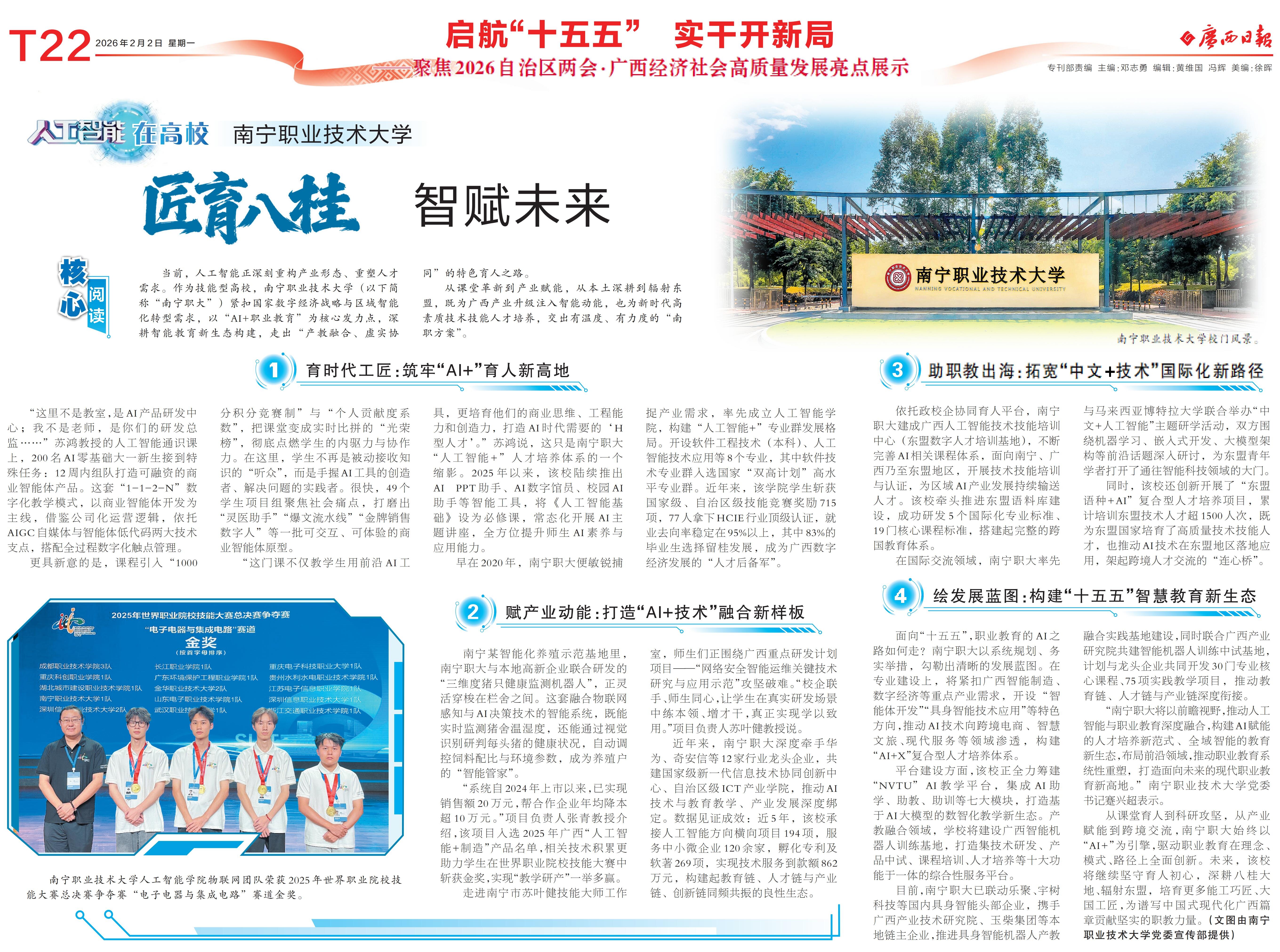 从课堂革新到产业赋能,从本土深耕到辐射东盟,既为广西产业升级注入智能动能,也为新时代高素质技术技能人才培养,交出有温度、有力度的“南职方案”。