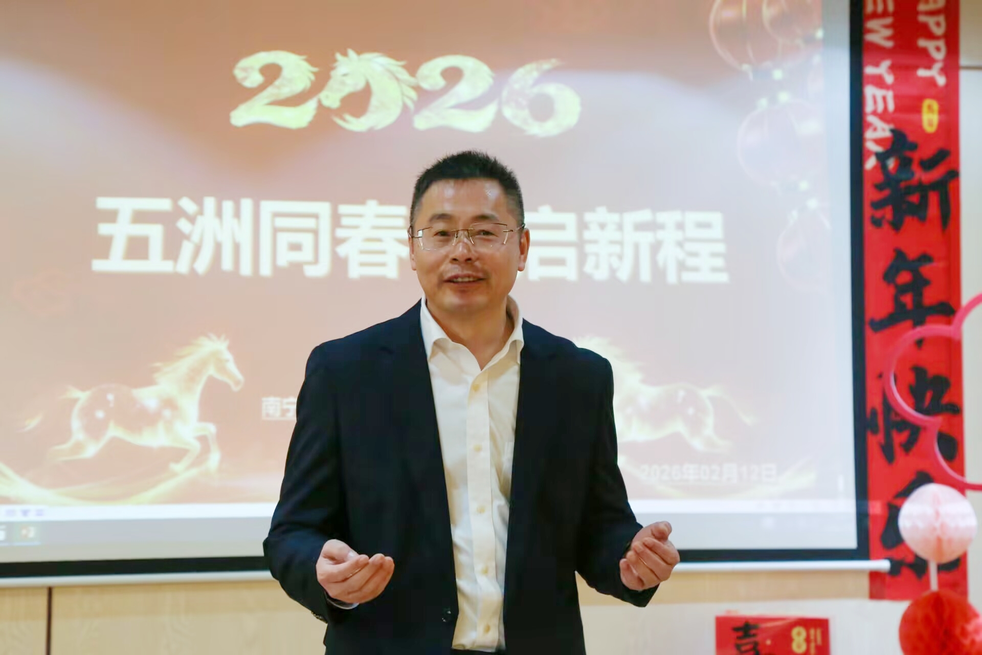2月12日,2026年“五洲同春 骏启新程”太阳成集团tyc7111cc留学生欢度春节活动在国际学院举行。学校党委副书记、校长宾月景,党委常委、副校长李东升,国际交流与合作处、国际学院相关领导以及师生代表与全体留校留学生欢聚一堂,共同迎接即将到来的2026年马年新春。