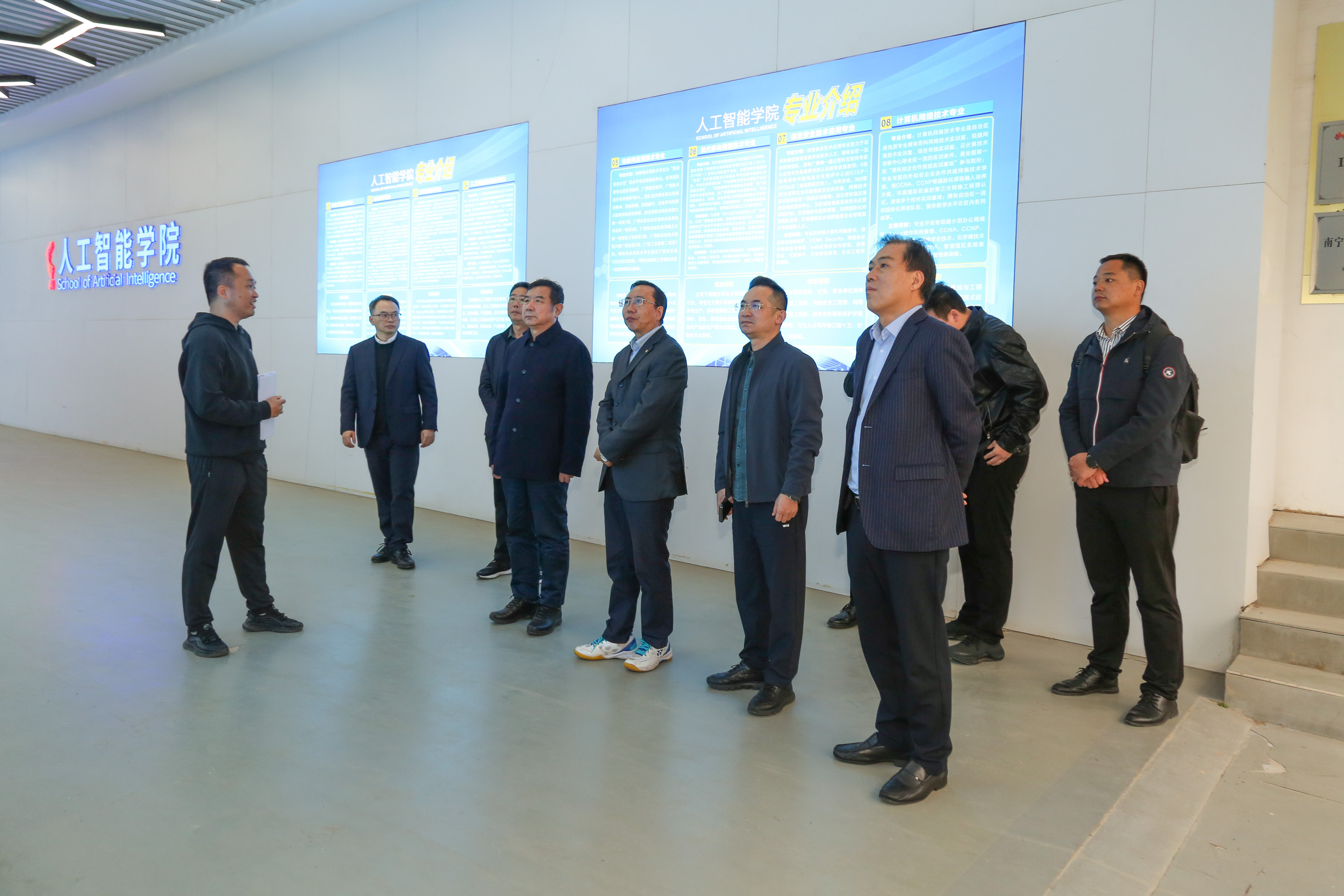 陆宝华一行在太阳成官网人工智能学院考察(南职融媒潘安妮/摄)