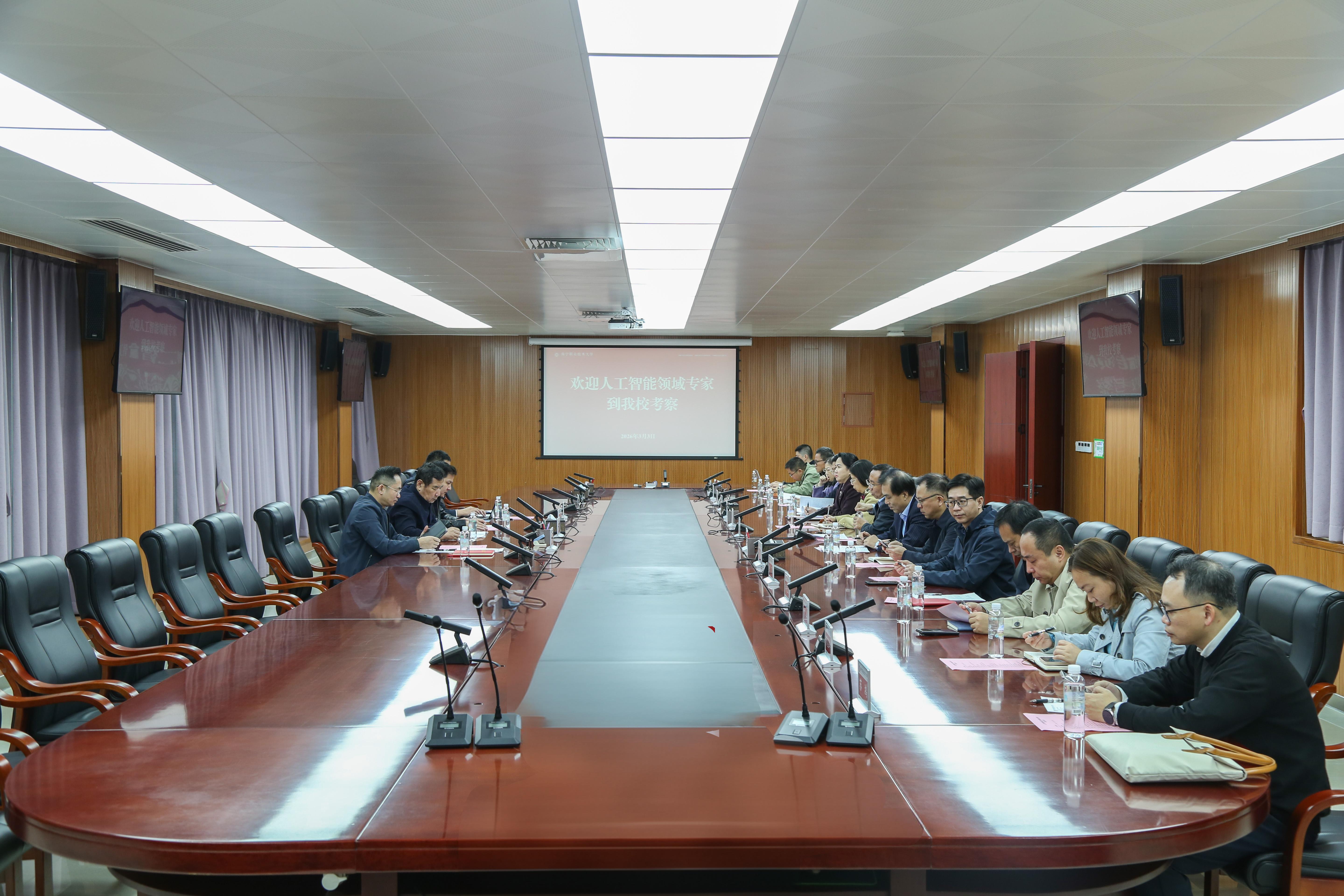 在专题座谈会上,蹇兴超系统介绍了学校在人工智能领域的建设布局,重点展示了国家“双高”专业群建设、AI赋能教学改革、面向东盟的职教出海等特色成果。专家团队对学校在人工智能与职业教育融合方面取得的阶段性成果给予高度评价,并就技术研发、产业应用、国际化合作等方向提出了宝贵建议。双方还围绕共建人工智能训练场、AI教学改革、校企合作、职教出海、探索“机器人即服务”(RaaS)新模式等具体合作方向进行了深入探讨,并在强化科研协同、共育高端技能人才、服务广西人工智能产业发展等方面达成广泛共识。