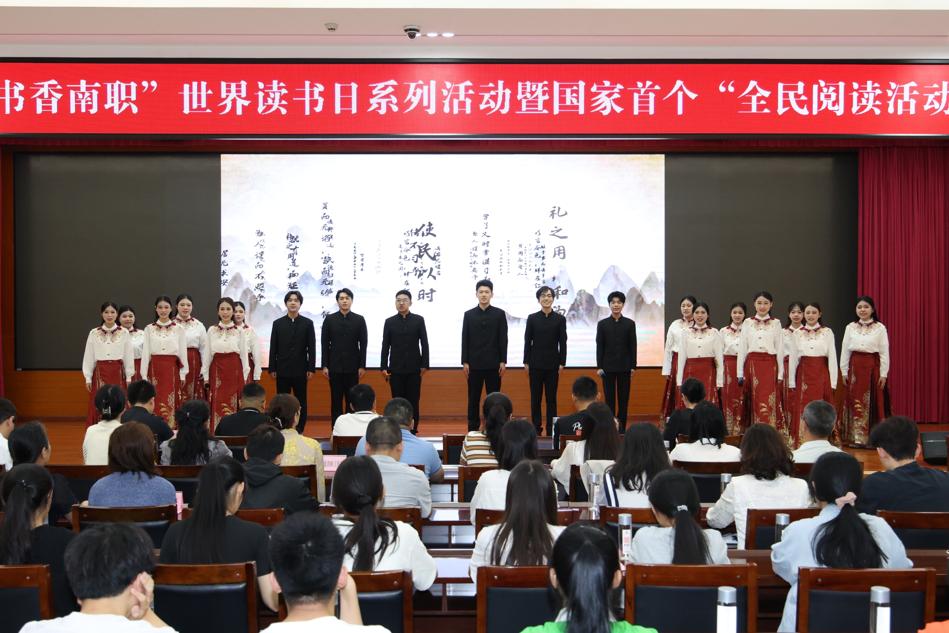 活动期间,团委和学校语言文字工作委员会组织学生进行了“文化传承·非遗诵读秀”主题文艺表演,以艺术表演的形式,宣传贯彻《全民阅读促进条例》精神。