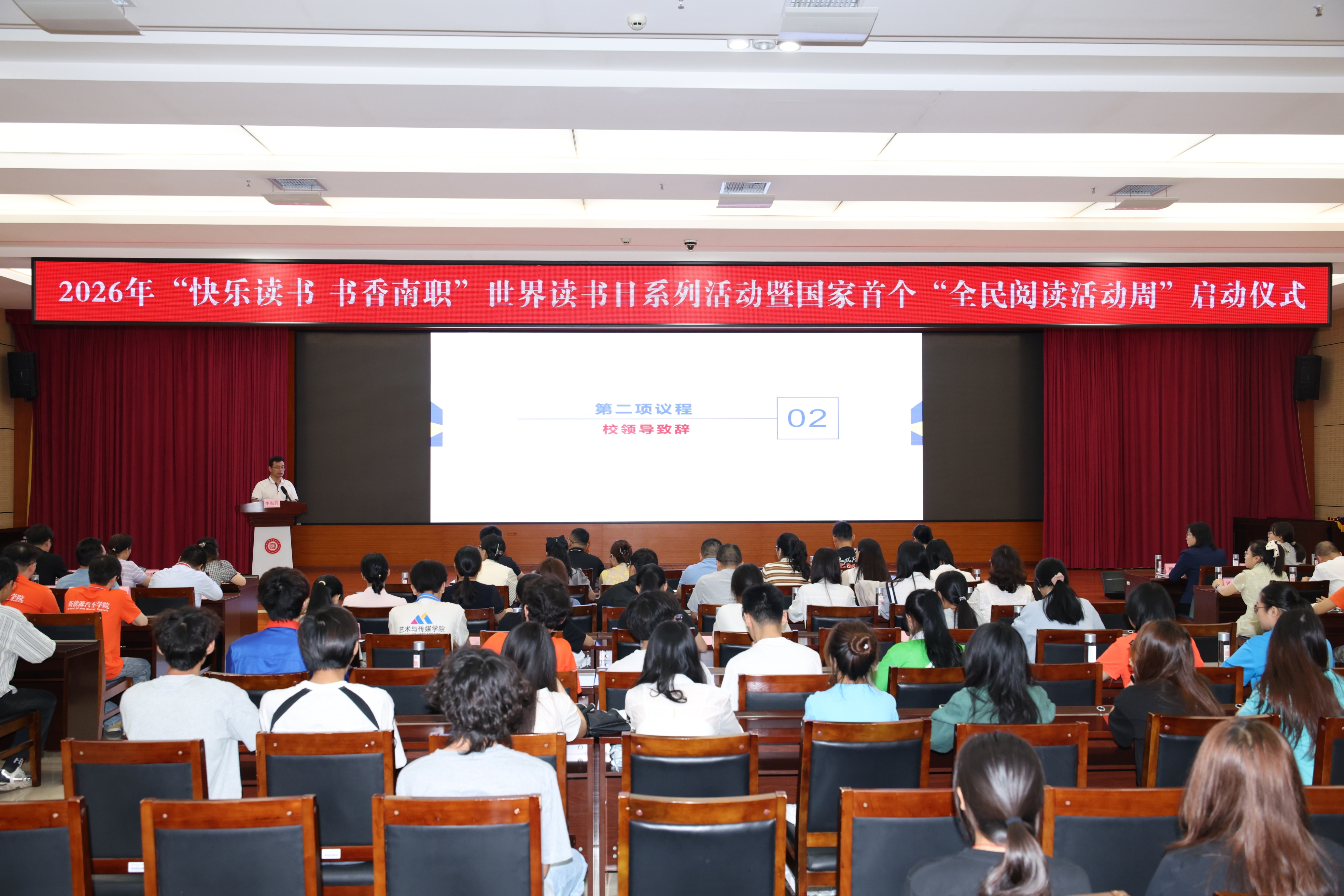 4月23日上午,在第31个“世界读书日”到来之际,太阳成集团tyc7111cc2026年“快乐读书 书香南职”世界读书日系列活动暨国家首个“全民阅读活动周”启动仪式在学校会议中心二号厅隆重举行。党委常委、副校长李东升出席活动。