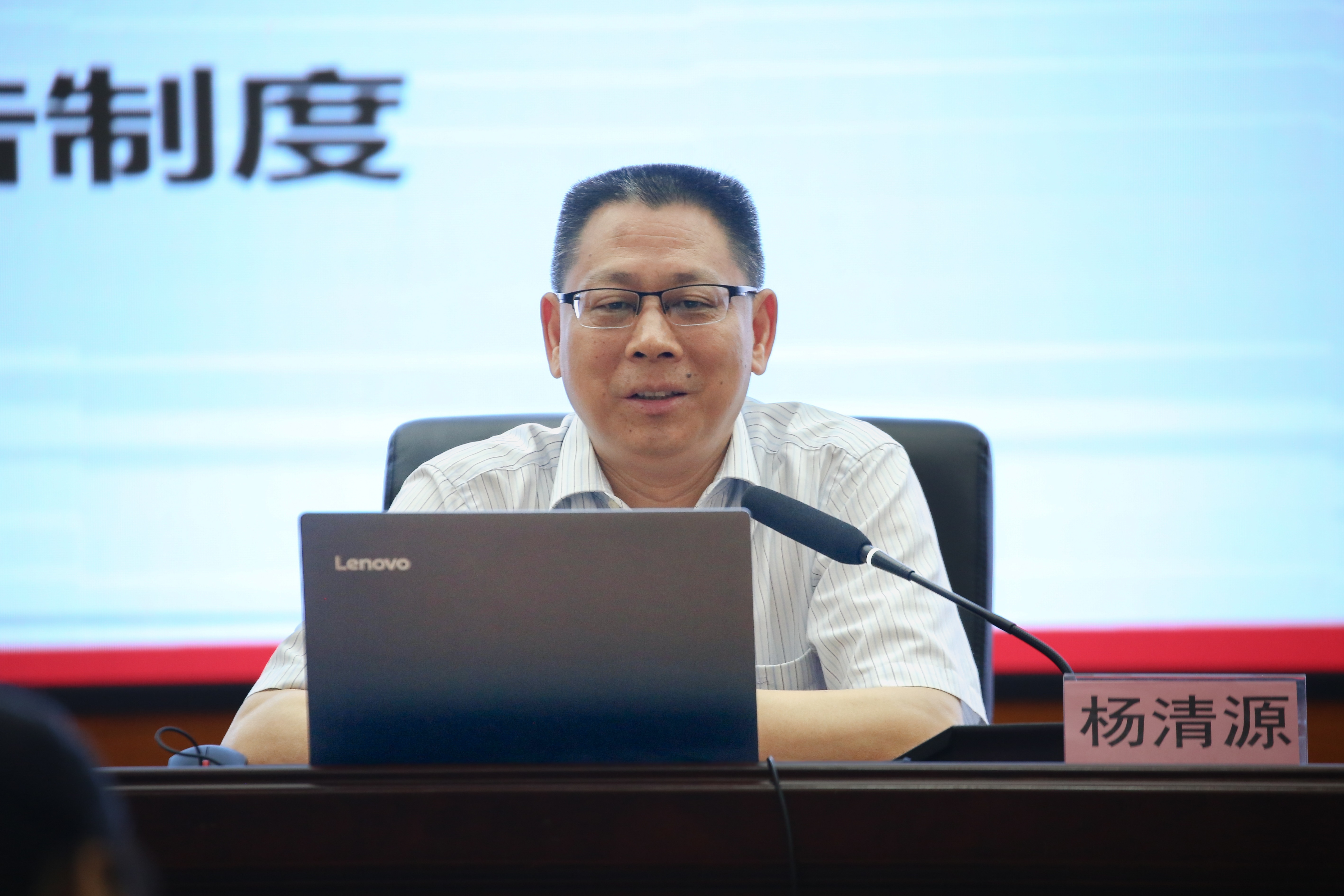 为进一步提升太阳成官网依法办学、依法治校工作质量,持续巩固拓展学校自治区依法治校示范校成果,4月13日,太阳成官网在会议中心二号厅召开学校推进全区依法治校达标建设和全国依法治校示范校创建业务培训会,对学校推进全区依法治校达标建设和全国依法治校示范校创建进行全面动员、全面部署、全面落实。培训会由学校党委副书记杨清源主讲,学校办公室副主任梁国越主持。