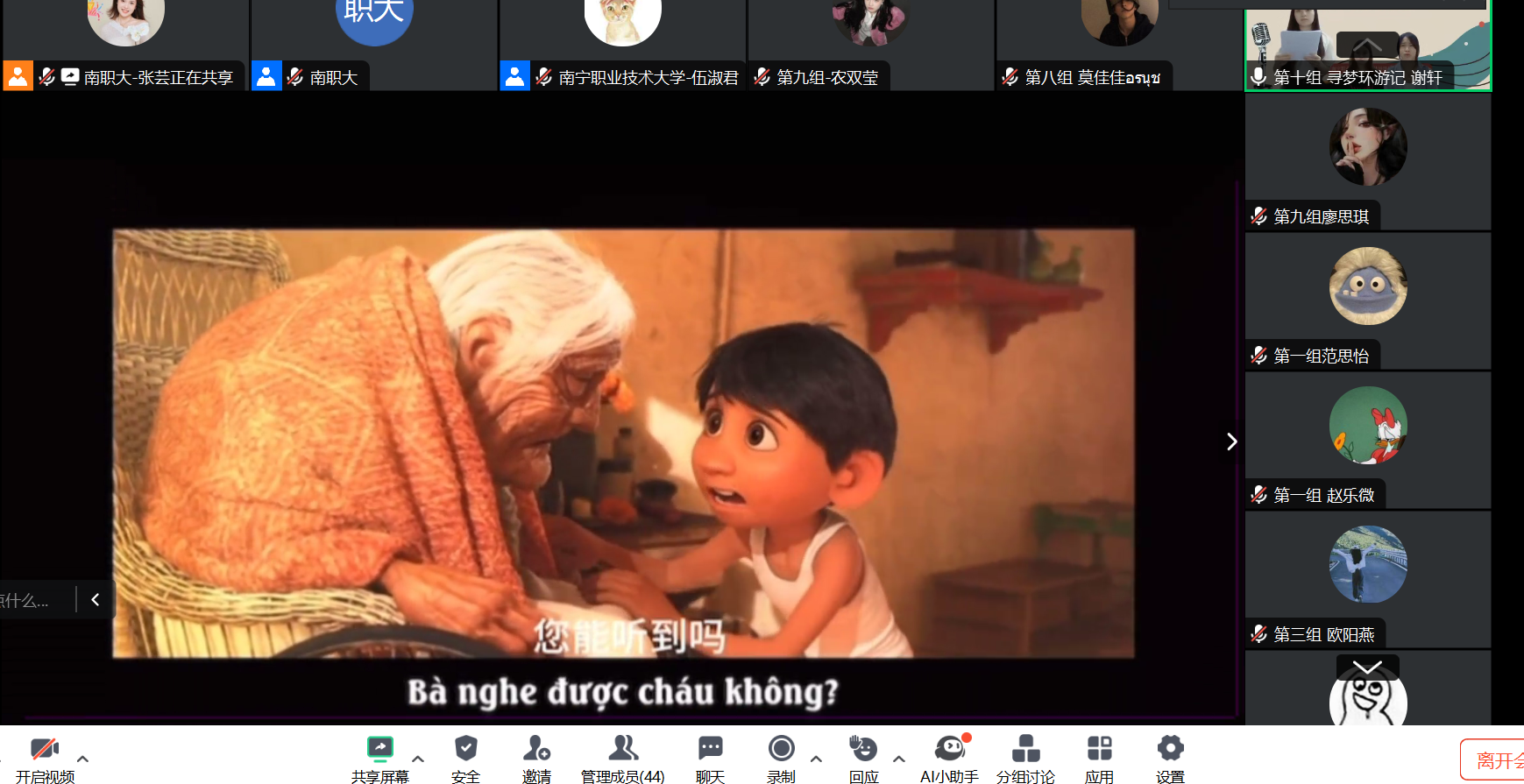 本次大赛以“美好生活、拼搏精神、社会发展”为主题,旨在通过配音这一形式,展现学生的外语应用能力,促进桂港粤地区外语教育的交流与合作。在历时半天的比赛中,参赛队伍各展所长,用英语、泰语、越南语三种语种进行了精彩的外语配音展示,为观众带来了一场视觉与听觉的盛宴。