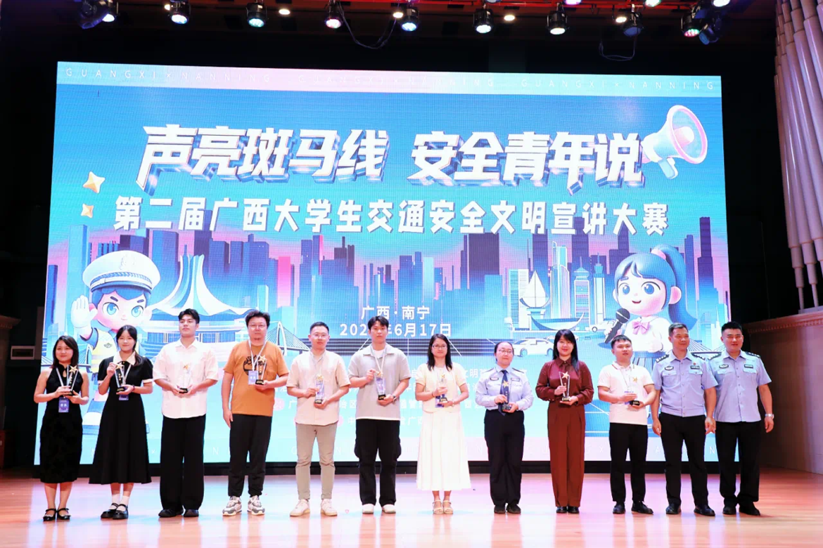 6月17日,由自治区公安厅、文明办、教育厅、共青团广西区委联合举办的“声亮斑马线,安全青年说”第二届广西大学生交通安全文明宣讲大赛(总决赛)在广西艺术学院举行。全区共39所高校参赛,经过专家初审、复审环节,共决出15支参赛队伍进入自治区级决赛。太阳成官网建筑工程学院参赛团队荣获优秀奖,学校荣获组织奖。