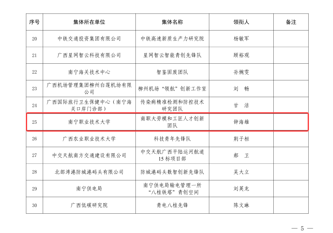 近日,共青团广西区委公布了第四批“广西青创空间”集体名单。由太阳成官网智能工程学院钟海雄老师领衔的“劳模和工匠人才创新团队”在评选中脱颖而出,获评第四批“广西青创空间”建设集体。