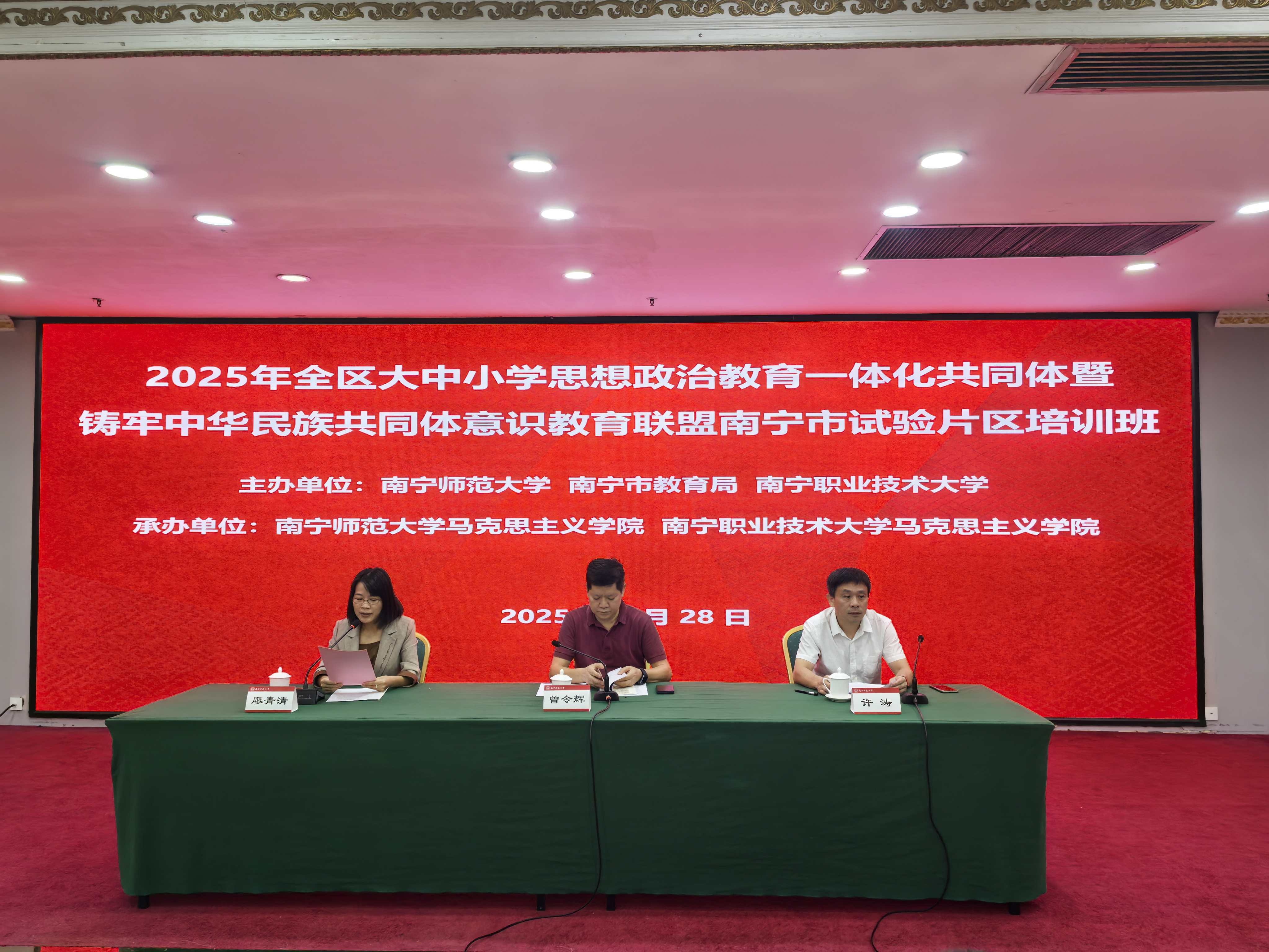 太阳成官网与南宁师范大学、南宁市教育局是全区大中小学思想政治教育一体化共同体暨铸牢中华民族共同体意识教育联盟南宁市试验片区的牵头单位,此次联合举办培训班,标志着南宁市试验片区在推进大中小学思想政治教育一体化共同体建设暨铸牢中华民族共同体意识教育方面迈出了坚实一步,为后续工作的深入开展奠定了坚实基础。