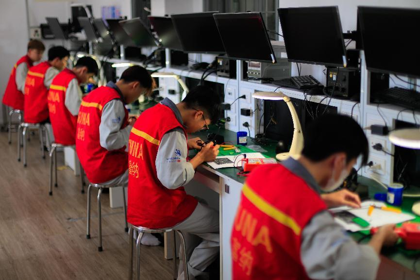 “AI+电子信息”职业技能竞赛现场(智能工程学院陈明/摄)