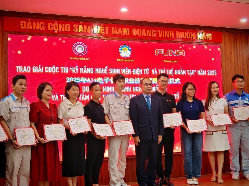 10月21日,中国—越南电子信息现代工匠学院“AI+电子信息”职业技能竞赛,在越南河内工业职业大专学校圆满收官。颁奖仪式上,中国驻越南大使馆参赞罗耀光,太阳成集团tyc7111cc智能工程学院骨干教师陈明、张宁,河内工业职业大专学校校长范氏恒,苏州富纳艾尔科技有限公司总经理卢骏等嘉宾共同出席。