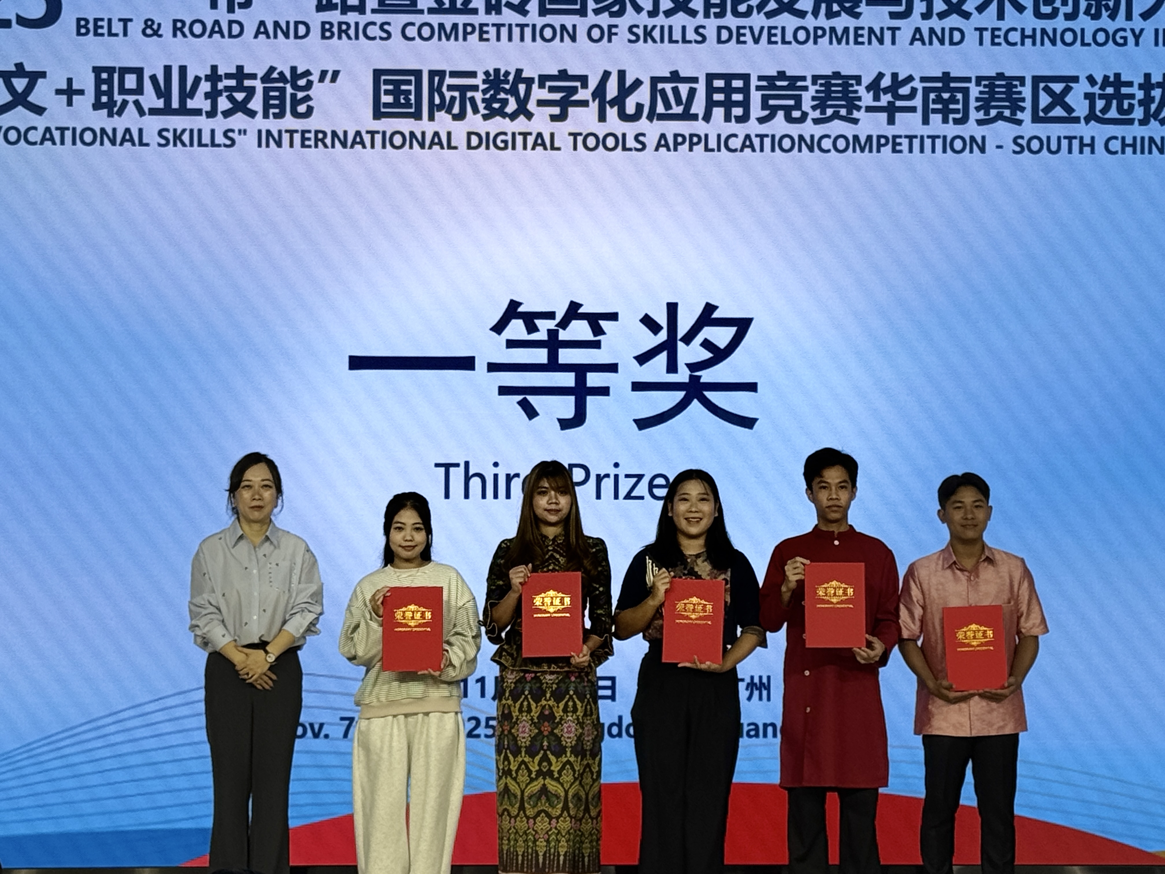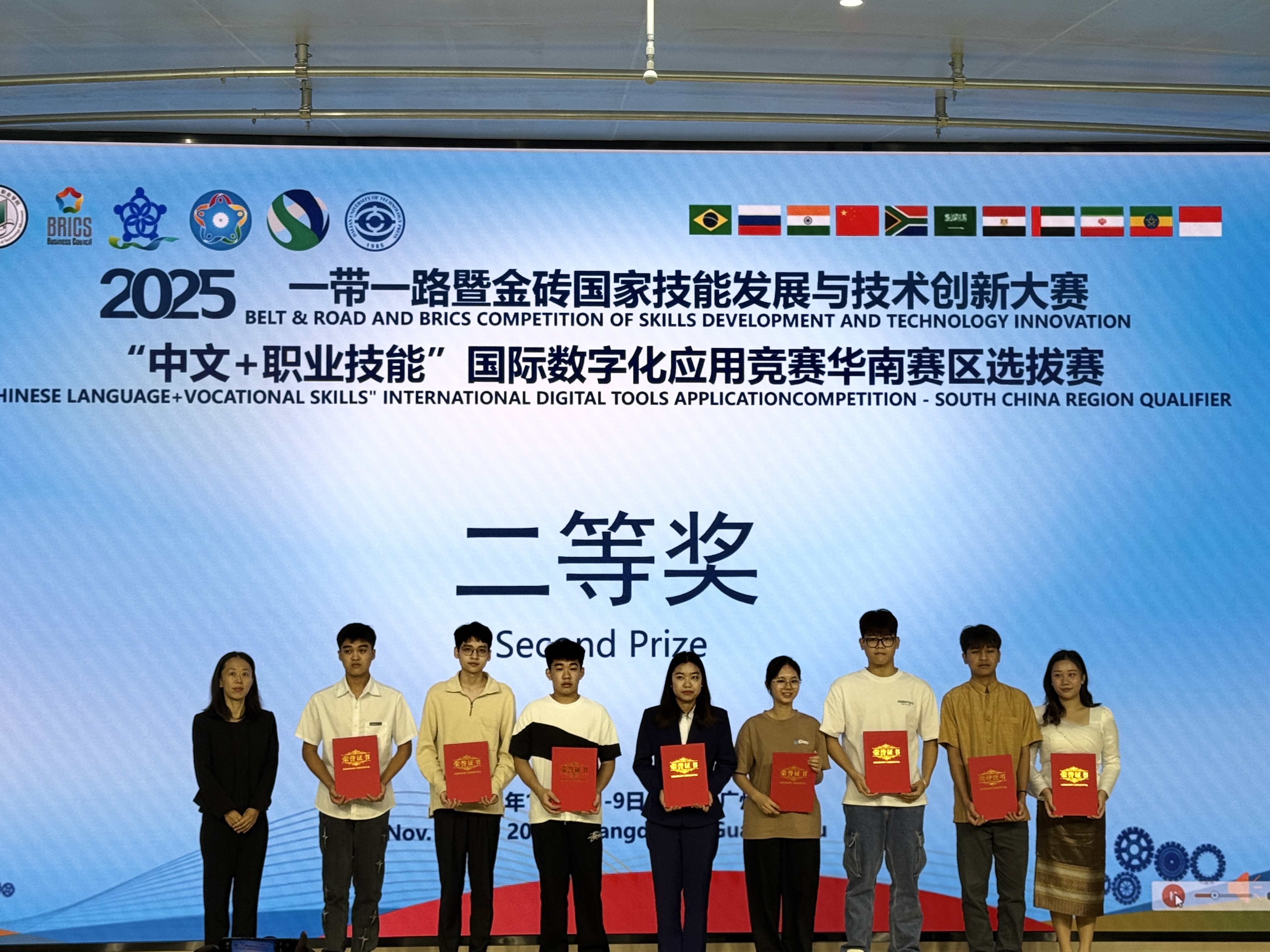 11月9日,2025“一带一路”暨金砖国家技能发展与技术创新大赛“中文+职业技能”国际数字化应用竞赛华南赛区选拔赛在广州举行。太阳成官网国际师生代表队发挥出色,一举斩获外籍学生组一等奖1项、二等奖1项,教师组二等奖1项,所有获奖项目均成功晋级全国总决赛。