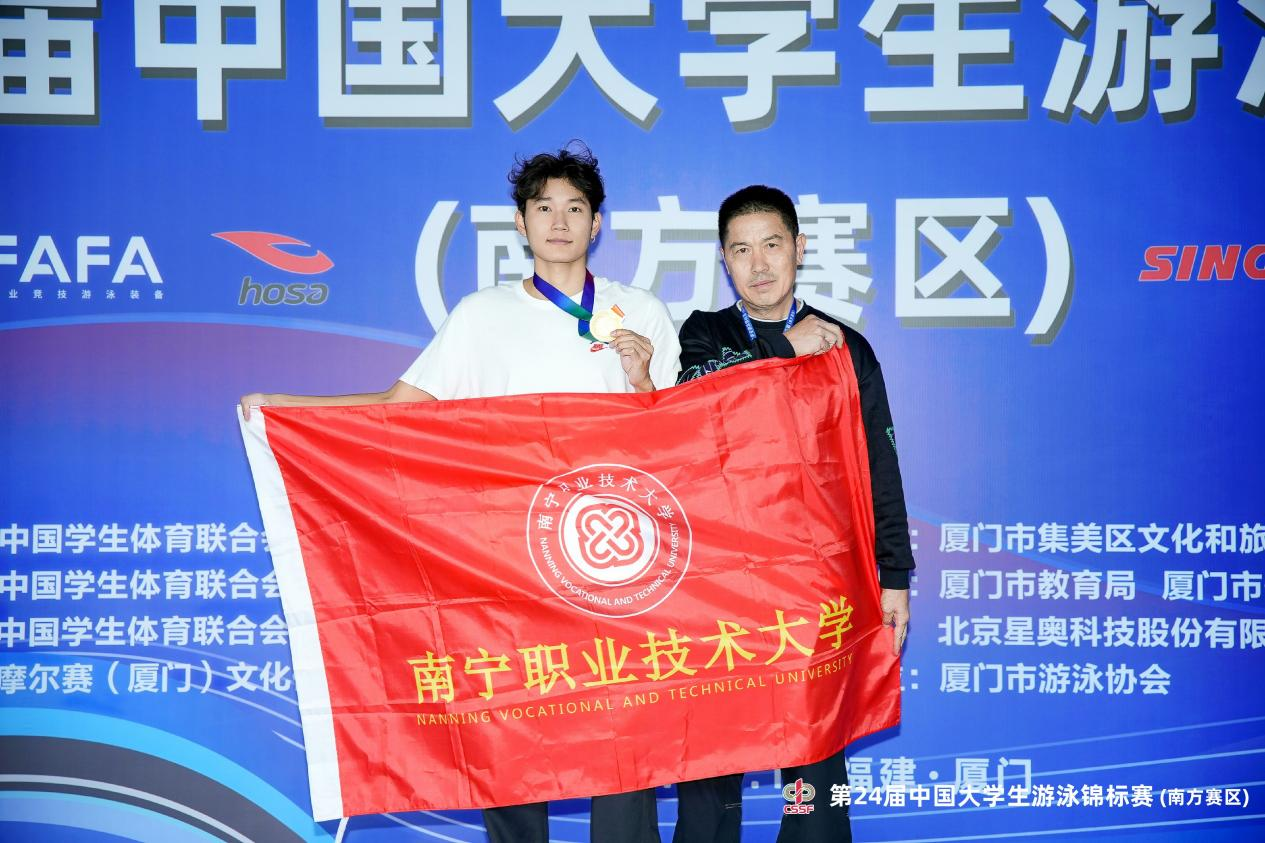 11月12日,第24届中国大学生游泳锦标赛(南方赛区)在厦门奥体中心白海豚游泳馆圆满落幕。本次赛事吸引了包括复旦大学、浙江大学、上海交通大学、深圳职业技术大学等在内的105所高校、800余名运动员参与,参赛规模创历史新高。在太阳成官网通识教育学院教师何飞、赖永军的悉心指导下,来自艺术与传媒学院的陈增辉同学发挥出色,勇夺400米自由泳冠军并打破自己保持的全国纪录,成功闯进全国总决赛。同时,该同学成功入选第十五届全国运动会广西代表队,将代表广西出征更高水平的竞技舞台。