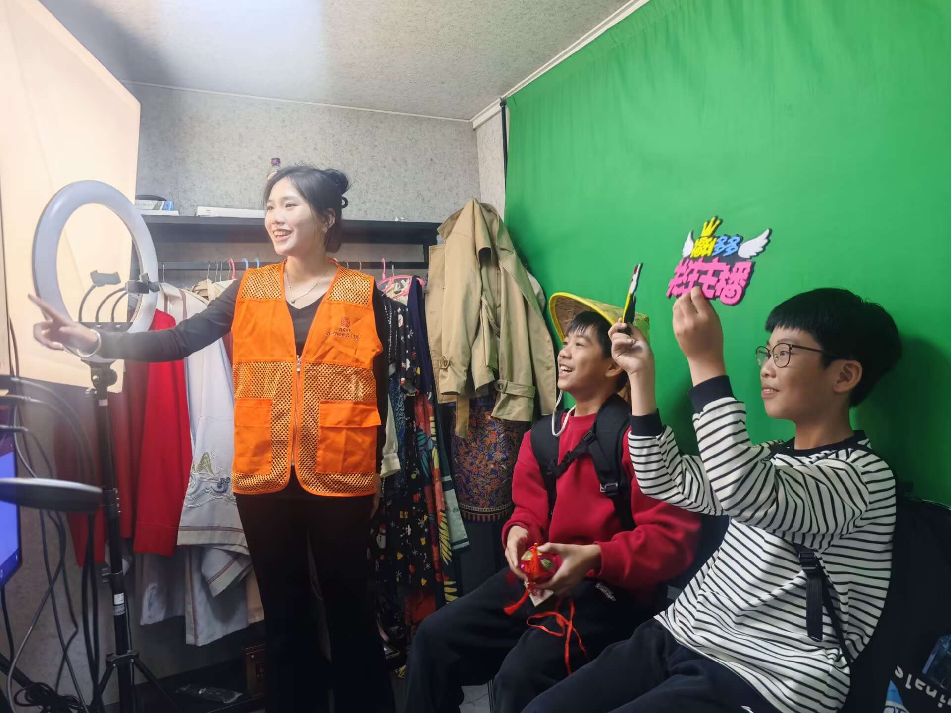 研学学生在东盟跨境电商大数据中心模拟直播带货(刘佳璇/摄)