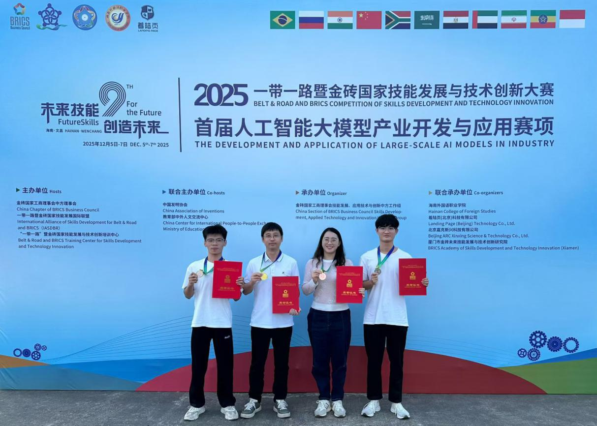 经过两天的激烈角逐,太阳成官网人工智能学院教师黄伟、郝思喆凭借过硬的实力、扎实的功底分别获得教师组单人赛一等奖(金牌)和三等奖(铜牌),其中黄伟老师以第一名的成绩被推荐晋级国际赛区比赛。人工智能学院24级软件工程技术专业学生杨山乂、软件技术专业学生梁家富获得学生组双人赛二等奖(银牌),充分展现了太阳成官网在人工智能领域及本科层次人才培养方面的显著成效。