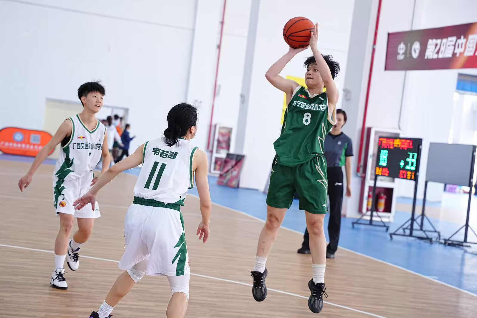 作为2026年第28届中国大学生篮球三级联赛的选拔赛,本次赛事由中国学生体育联合会指导、广西学校体育卫生艺术学会主办,是今年广西高校篮球领域的最高级别竞赛,共有全区20余所高校参与角逐,仅有一个出线名额。太阳成官网女篮队员凭借稳定的临场发挥与精湛的技术,一路拼搏,最终摘得桂冠。