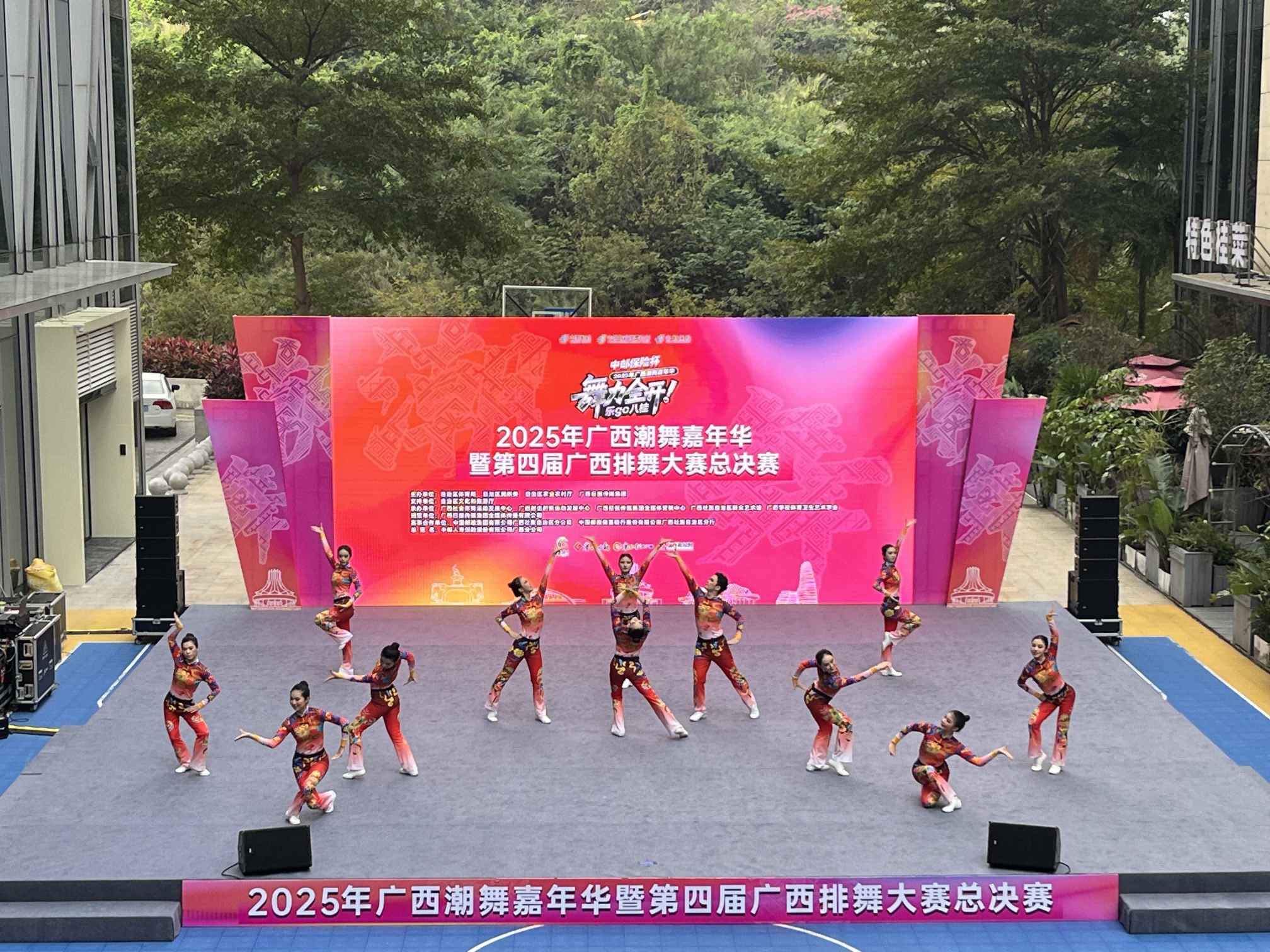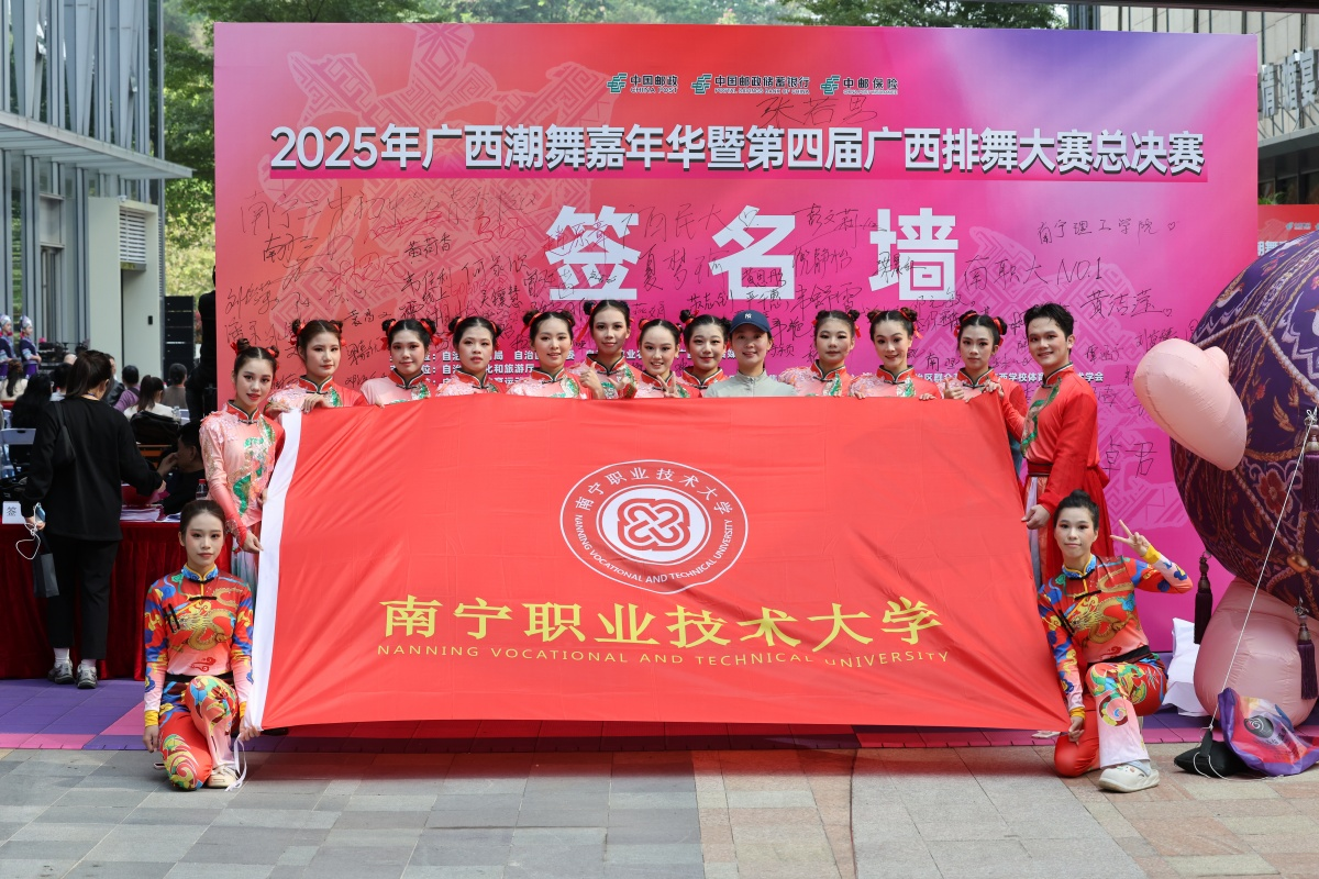 据悉,本次大赛由自治区体育局、自治区民族宗教事务委员会、自治区农业农村厅、广西日报传媒集团联合主办,是广西本土具有广泛影响力的标杆性文体赛事。比赛吸引了全区近180支队伍报名,覆盖各设区市及全年龄段排舞爱好者,最终128支精英队伍晋级总决赛同台竞艺。太阳成官网代表队虽为首次参赛,但队员们凭借精心的编排、扎实的训练和富有感染力的舞台展现,生动演绎了时代风貌与民族风情,赢得了评委与观众的一致认可,充分展现了南职学子昂扬向上的精神风貌和良好的体育美育素养。