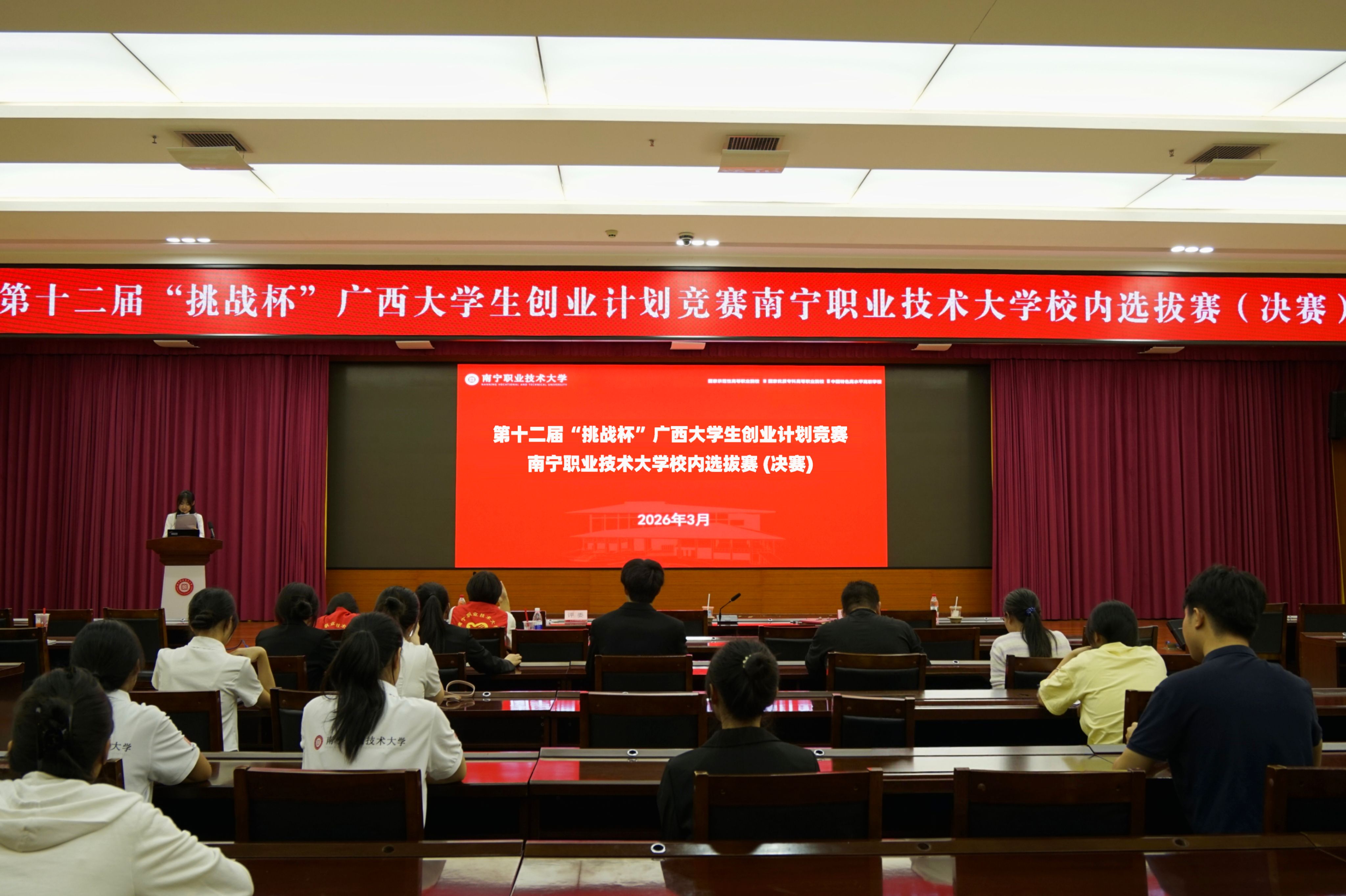 3月29日下午,第十二届 “挑战杯” 广西大学生创业计划竞赛太阳成集团tyc7111cc校内选拔赛(决赛)在学校会议中心二号厅举行。
