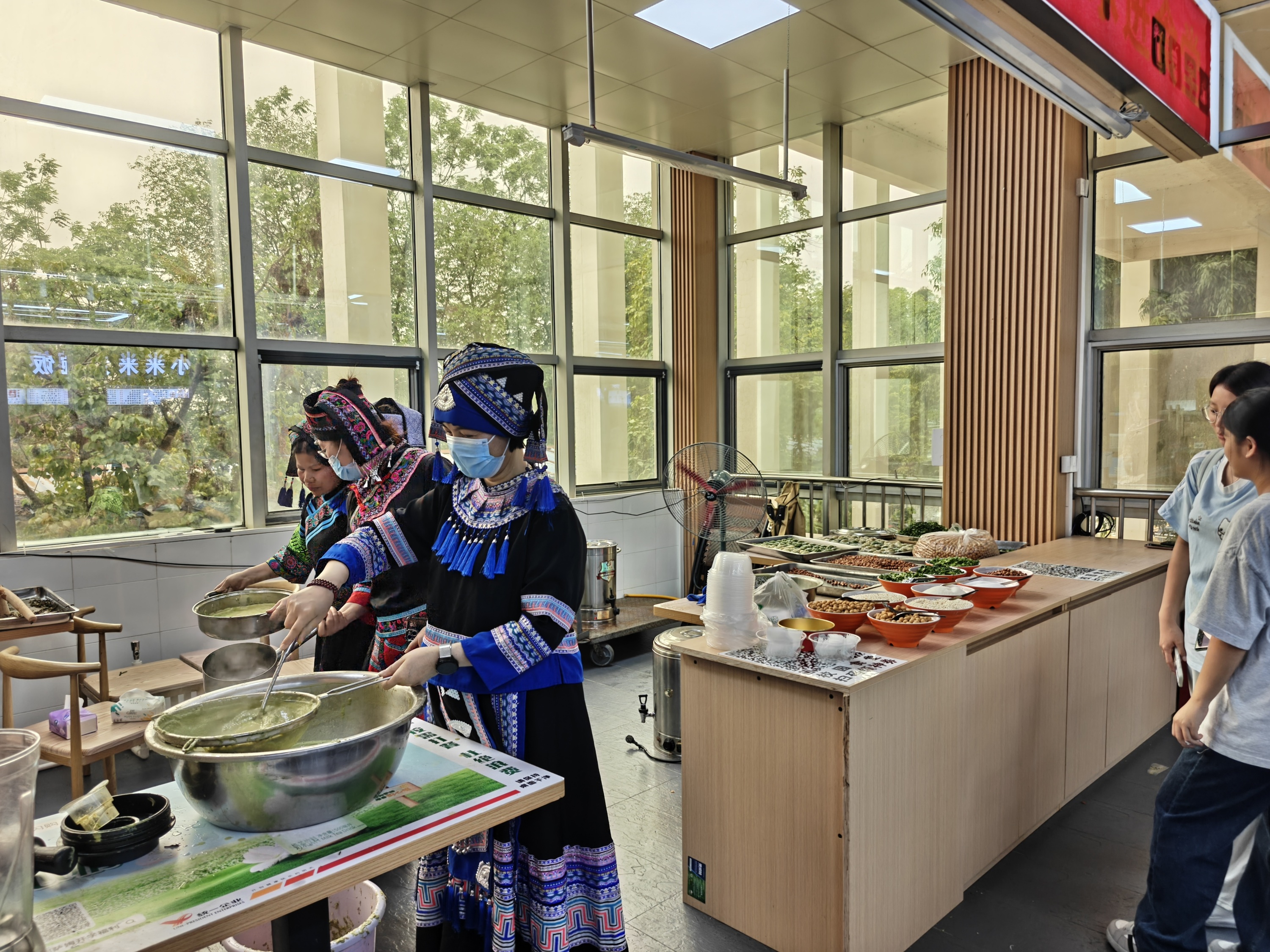 在太阳成官网2026年“三月三 趣广西”暨铸牢中华民族共同体意识主题宣传活动热烈开展之际,学生食堂同步推出系列特色民俗美食活动,通过赠送五色糯米饭、开展油茶体验、供应艾叶糍粑等丰富形式,让各族师生细细品味壮乡美食,在烟火气中筑牢民族团结之基。