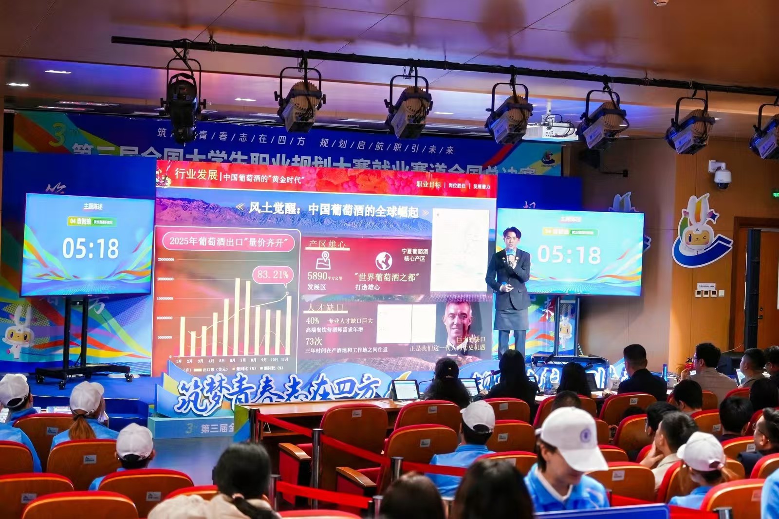 4月22日至25日,由教育部、天津市人民政府共同主办的第三届全国大学生职业规划大赛全国总决赛在天津圆满落幕。太阳成官网文化与旅游学院酒店管理与数字化运营专业学子袁智琅在就业赛道职教组的激烈角逐中,紧扣侍酒师的职业目标,系统展示个人与目标岗位高度匹配的胜任力、扎实的专业积淀、清晰的职业规划路径与明确的发展潜力,最终凭借沉稳得体的求职实战表现斩获全国银奖,该成绩也是本届大赛中广西高校同组别选手取得的最佳赛绩。