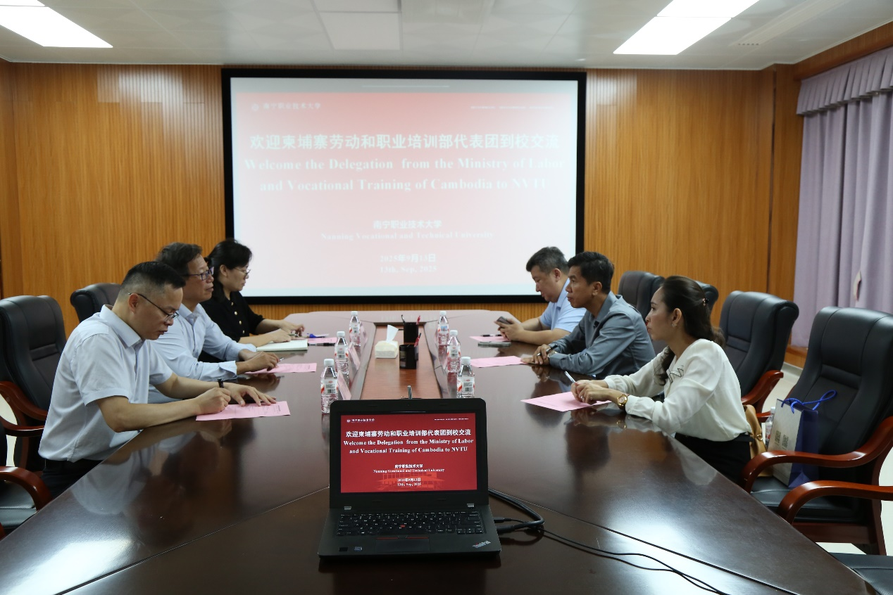 座谈会上,周旺代表学校对谢顾所一行的到来表示热烈欢迎,并重点围绕学校服务区域经济发展和国际交流合作的实践,特别是面向东盟国家开展职业教育合作的有关情况进行了详细介绍。周旺表示,学校将充分发挥在人工智能、智能工程、文化旅游等领域的优势,与柬方共同探索国际合作新路径。