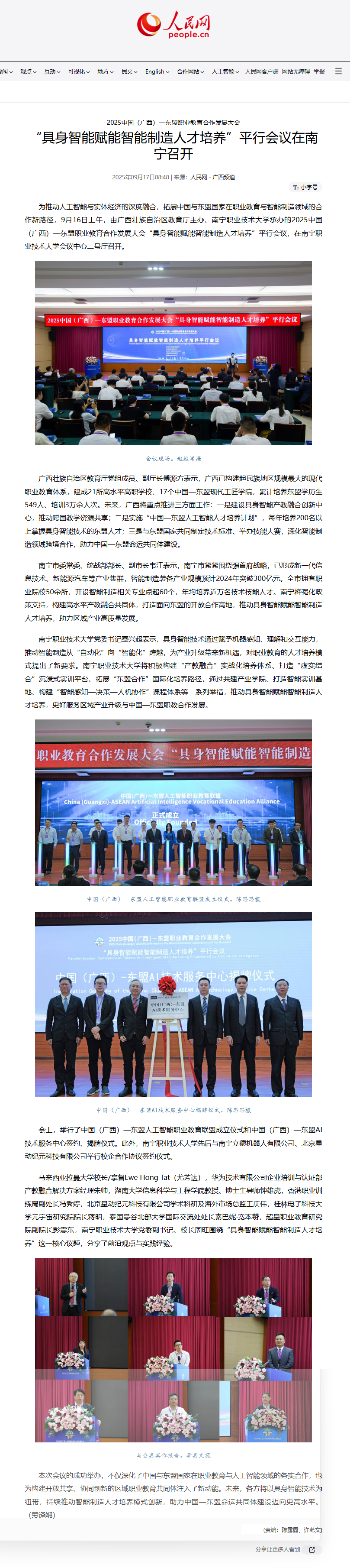 2025中国(广西)—东盟职业教育合作发展大会“具身智能赋能智能制造人才培养”平行会议在南宁召开