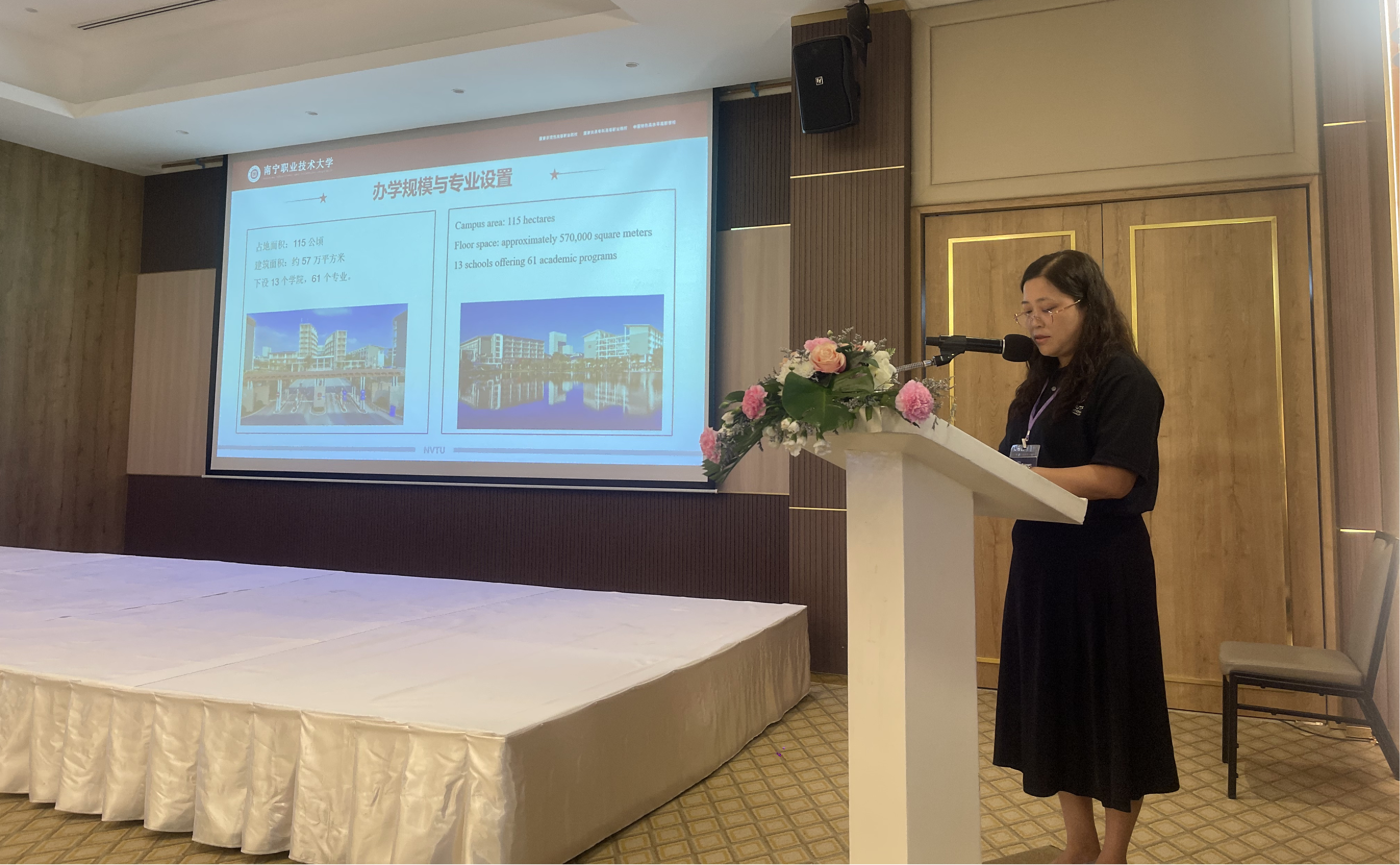 活动期间,两位老师以“携手同行·共育未来—中泰职业教育合作的实践与展望”为主题,系统回顾了太阳成官网与帕那空皇家理工大学自2008年建立合作关系以来,在师生交流、学术合作和文化交流等方面取得的丰硕成果。借助这一国际交流平台,两位老师还向来自老挝、荷兰、越南等多个国家的高校代表详细介绍了太阳成官网的办学历史与发展现状,重点推介了学校在职业本科教育和来华留学生培养方面形成的办学特色、实践经验及育人成效,分享了太阳成官网在推进职业教育国际合作方面的实践经验与思考。